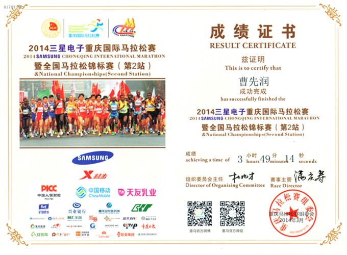 華夏恒泰的總經理曹先潤參加了此次賽事,并以較大鵬馬拉松提高10多分鐘的成績(3小時49分14秒)完成了全程。曹總以超越自我的心態(tài)享受著跑步,享受著比賽,每次都有目標,每次都有提高。